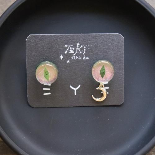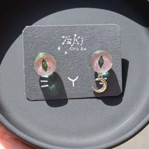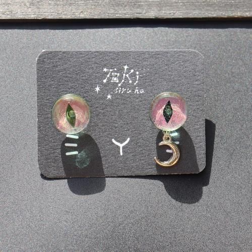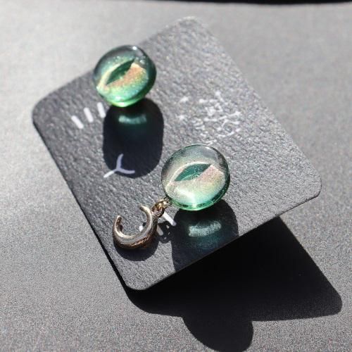 「夜空を眺める猫の目」をイメージした、ガラスのピアス。