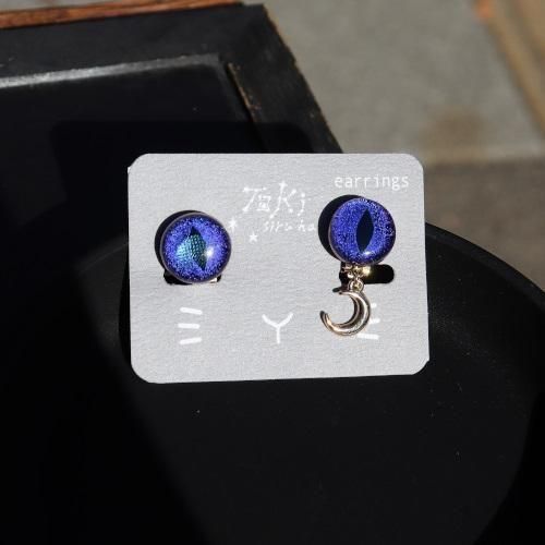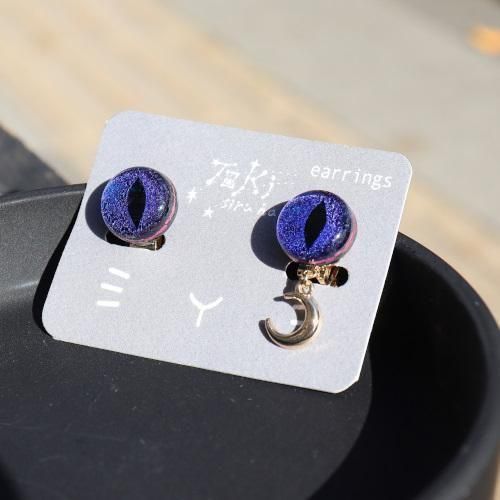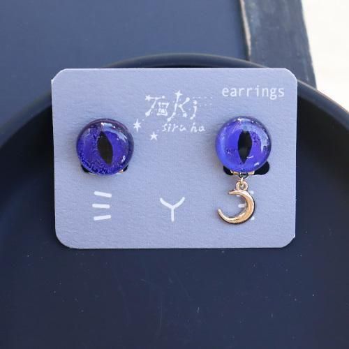 「夜空を眺める猫の目」をイメージした、ガラスのイヤリング。
